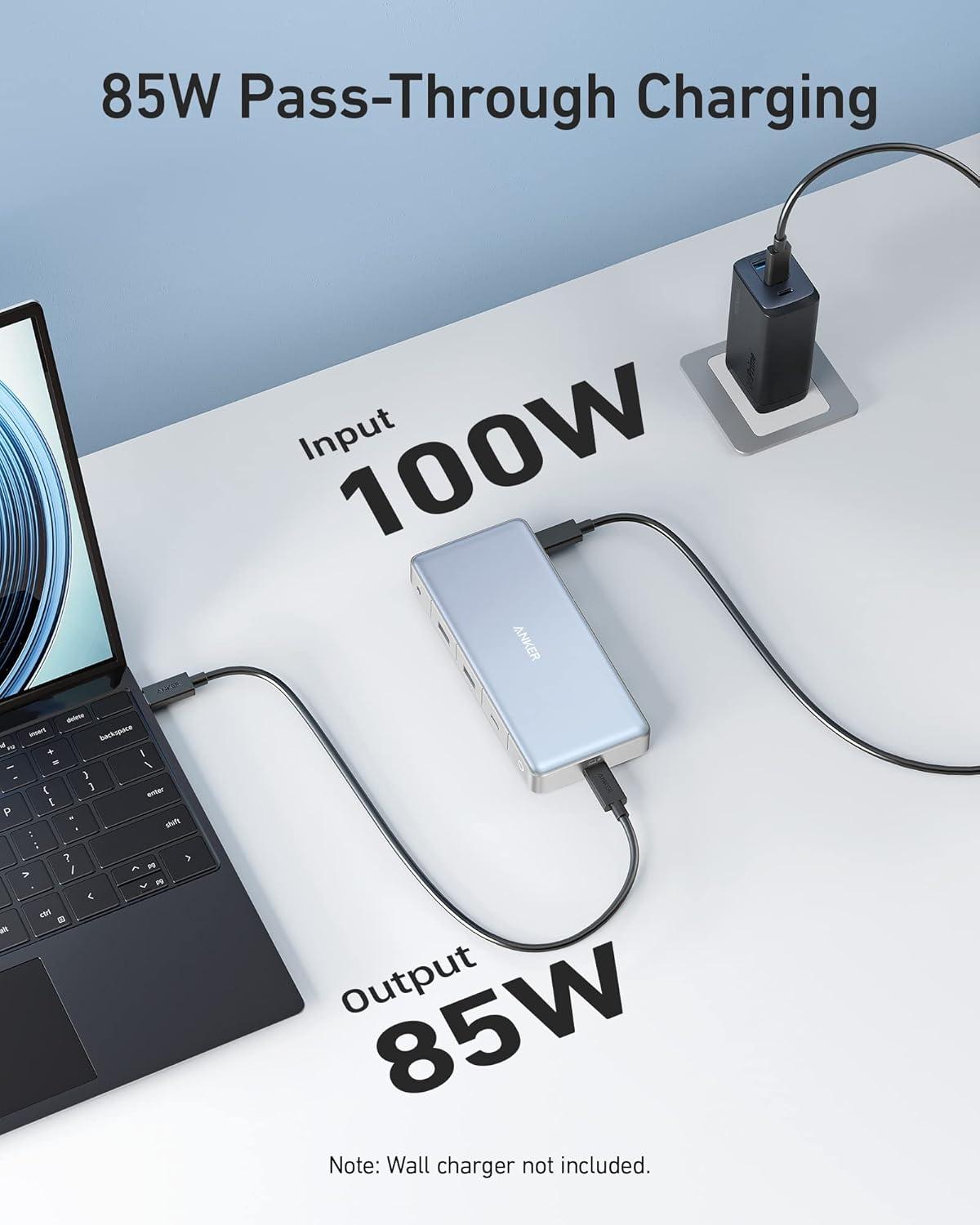 85W Pass-Through Charging: Keep your laptop powered while accessing the hub's other functions. Pass-through charging requires a charger (not included).