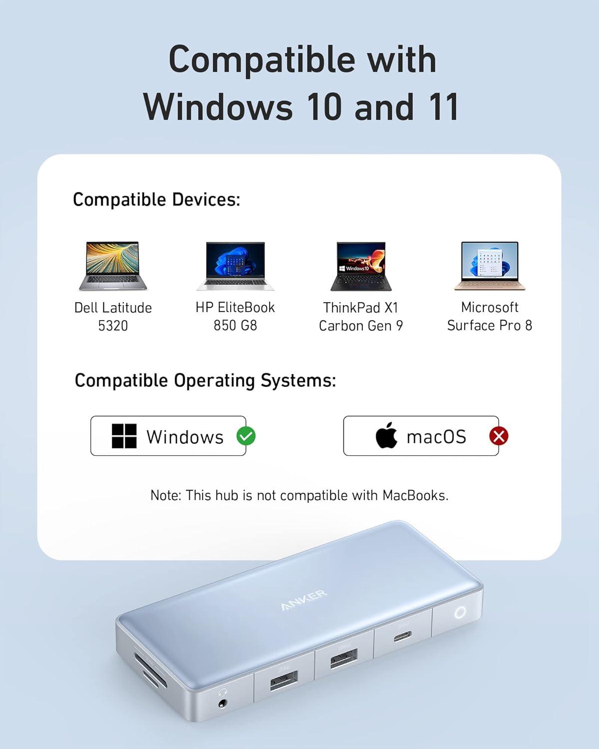 Anker 575 USB-C Hub (12-in-1, Dual HDMI, DP), Triple Display Docking Station, 10 Gbps Data Ports, 4K HDMI and DisplayPort, Max 100W Pd-in, Ethernet, for Dell, Thinkpad Laptop and More