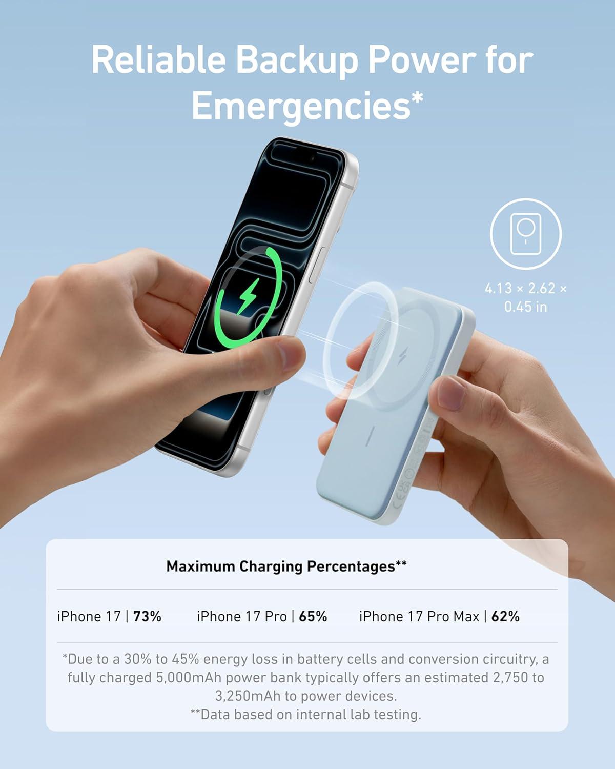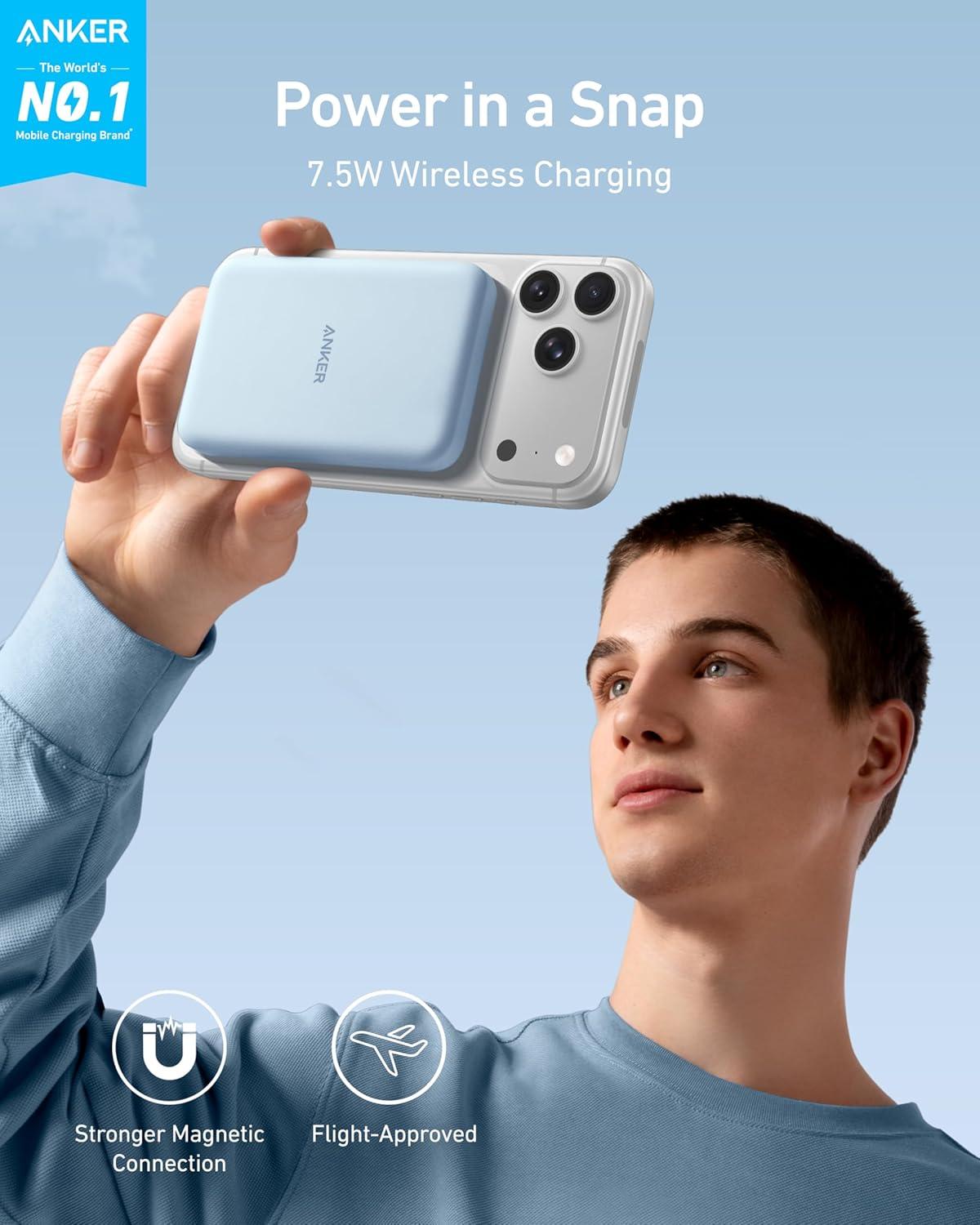 Anker 621 Magnetic Portable Charger (MagGo), 5,000mAh Wireless Power Bank with USB-C Cable, Magsafe-Compatible Battery Pack for iPhone 16/15/14/13/12 Series(Blue)