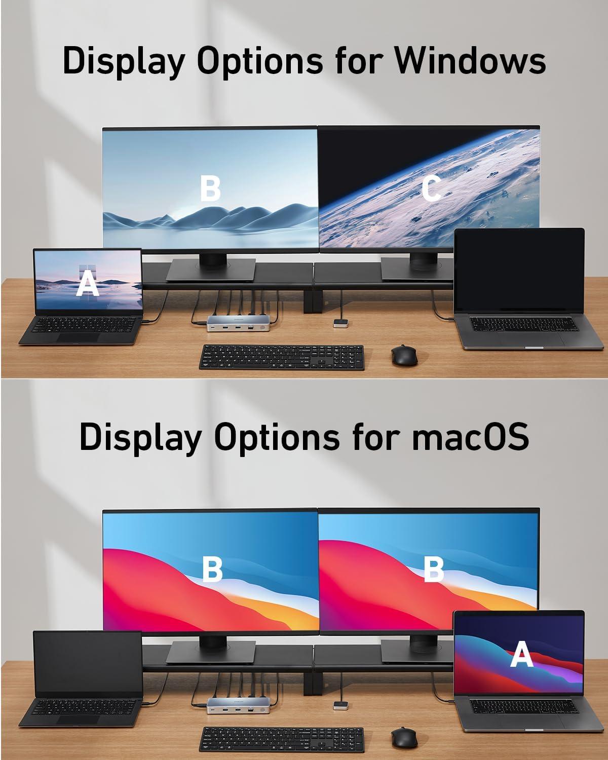 Anker Docking Station, KVM Switch for 2 Laptops, Dual 4K Monitor 554 USB C Docking Station, with HDMI and DisplayPort, Max 100W PD, USB 3.0, Audio for Lenovo Laptop, Macbook, iPad, Steam Deck and More