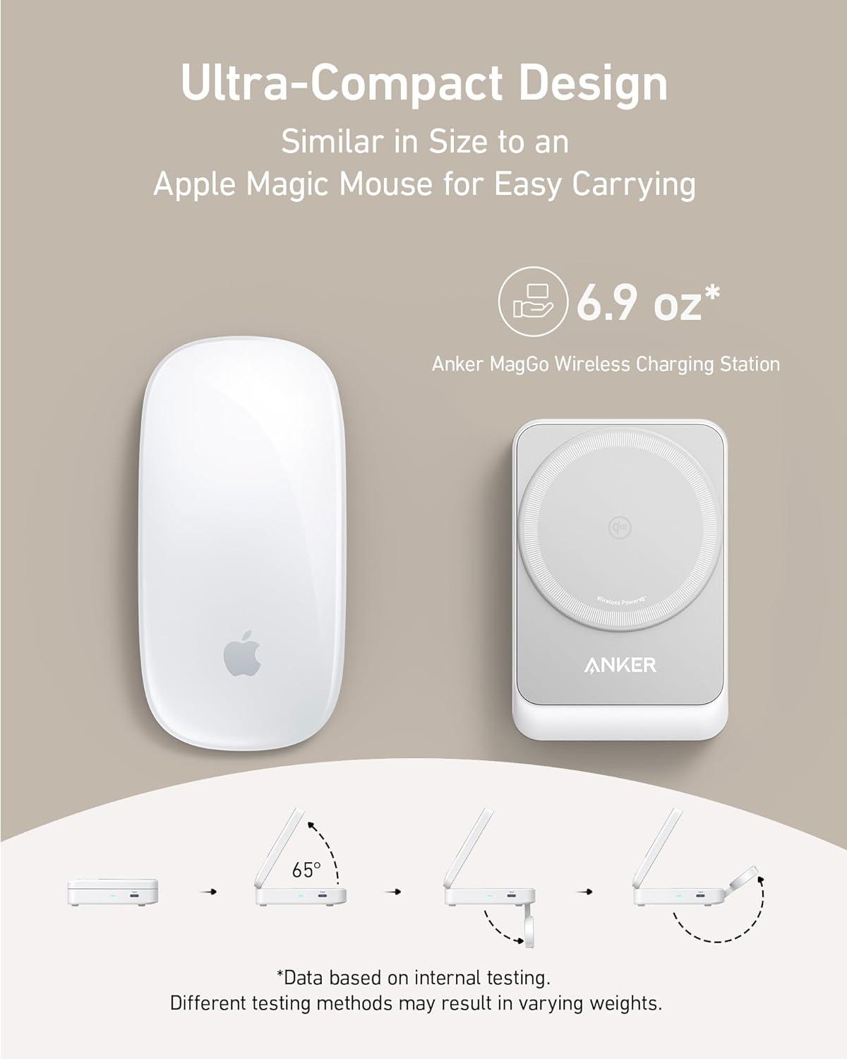 Ultra-Compact Foldable Design: At only 6.9 oz, this wireless charging station boasts a size comparable to a deck of cards when folded and weighs less than a baseball.
