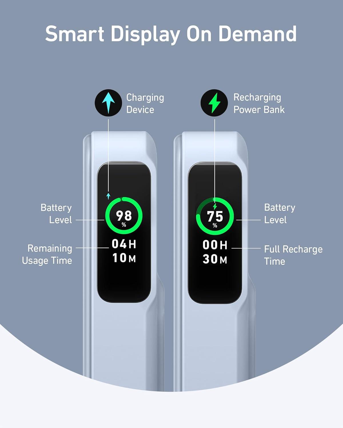 Anker MagGo Power Bank, Qi2 Certified 15W Ultra-Fast MagSafe-Compatible Portable Charger, 10,000mAh Battery Pack with Smart Display and Foldable Stand, For iPhone 15/14/13/12 Only(USB-C Cable Include)(Blue)