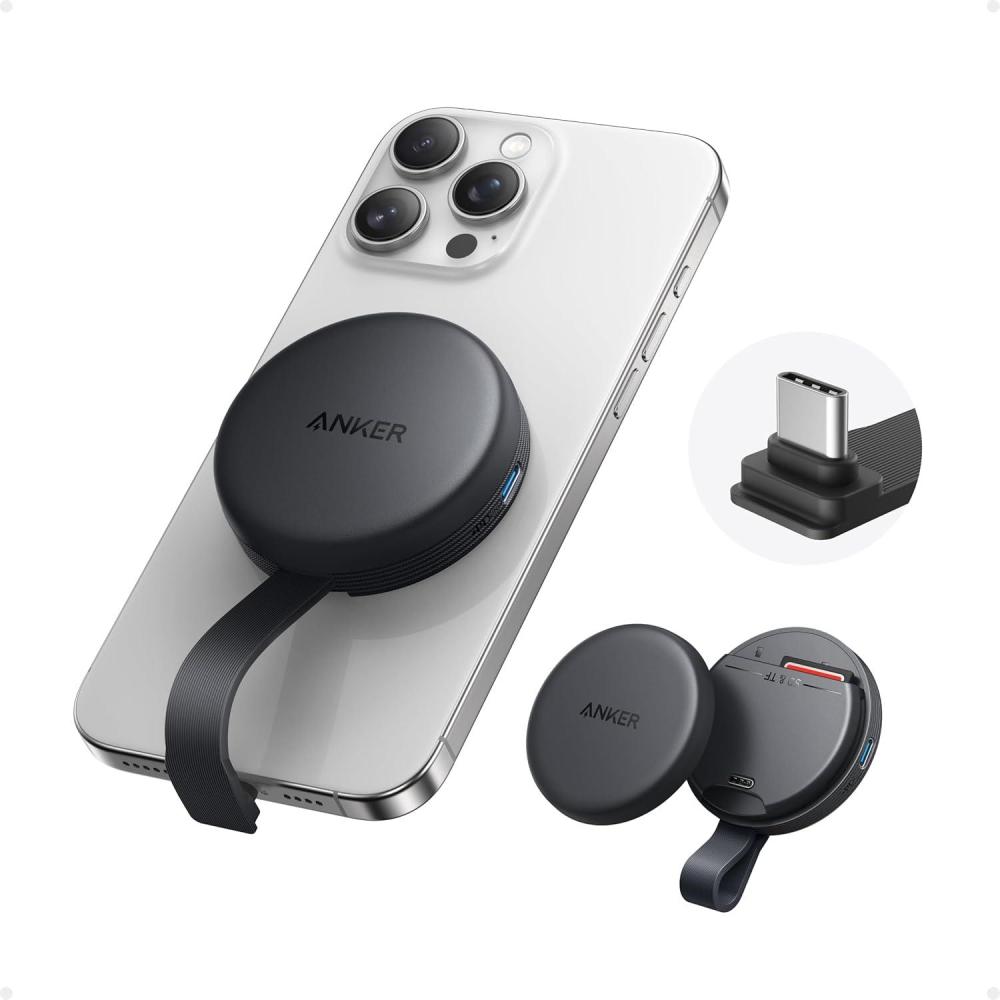 Anker MagGo USB-C Adapter, SD Card Reader for USB C iPhone 16/15 Series(Not for12/13/14), Portable Magnetic Memory Card Reader with Built-in Cable, Slots for SD&TF, 312MB/s Max Data Transfer(Black)(Black Stone)