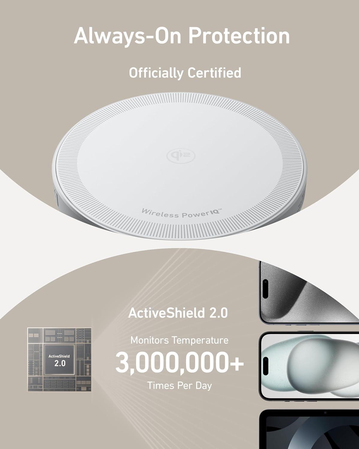 Non-Stop Reliable Protection: Rest easy with consistent protection, brought to you by Qi2 certification and the ActiveShield safety system, which monitors temperature up to 3 million times a day.