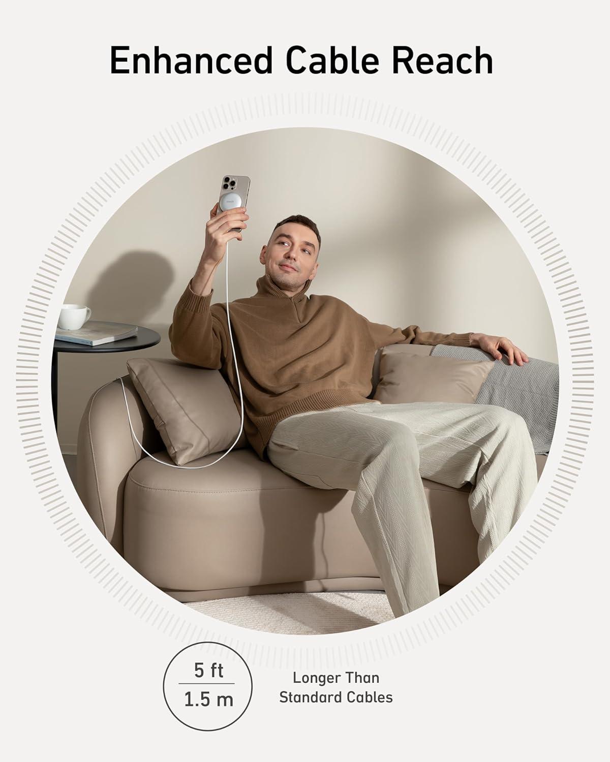 Freedom to Power: Benefit from the flexibility of a 5 ft extended cable that provides a wider range for charging your devices.