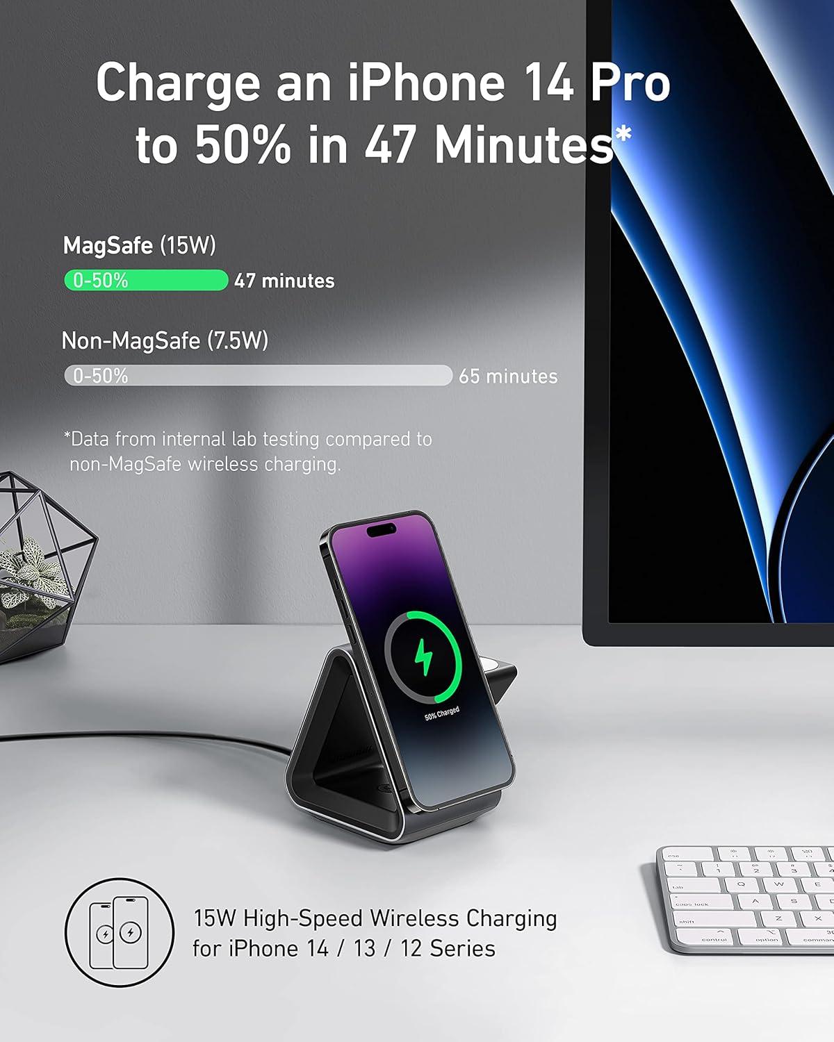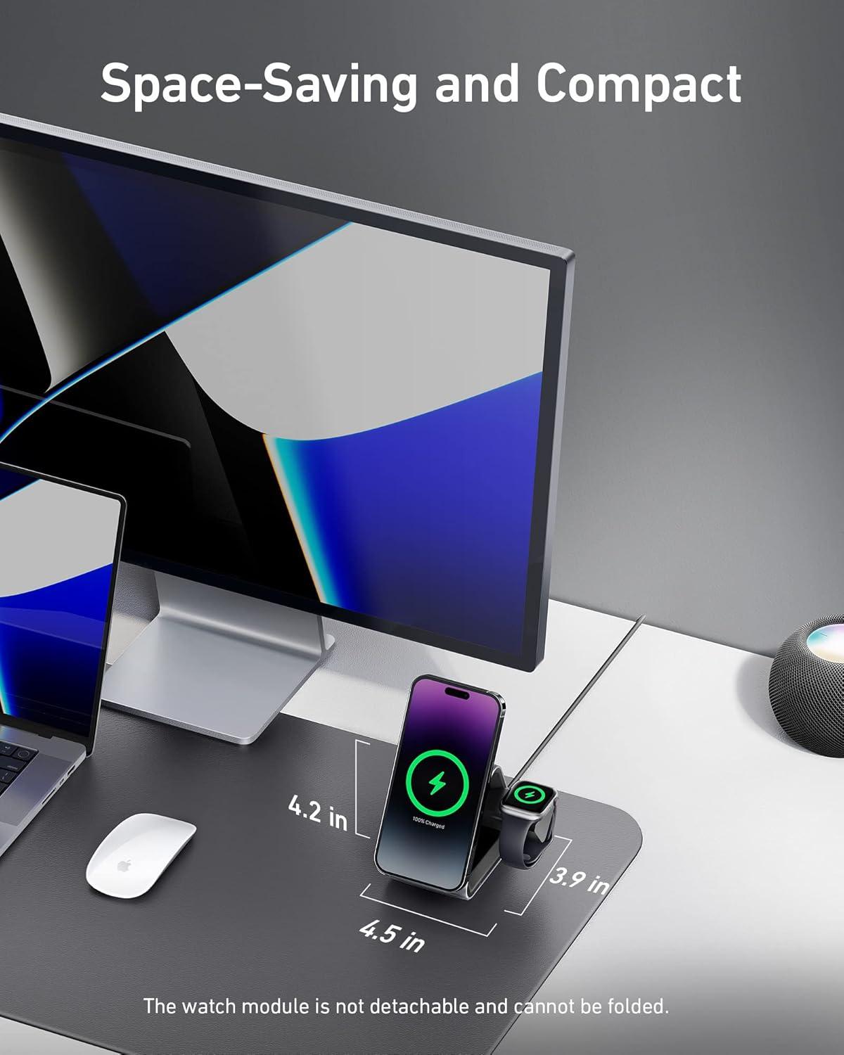 Anker MagSafe Charger Stand, 737 MagGo Charger, 3-in-1 Charging Stand with MFi-Certified 15W Max Fast Charging, iPhone 15/14/13/12 Series, Apple Watch S8/7/6, AirPods, 30W USB-C Adapter Included