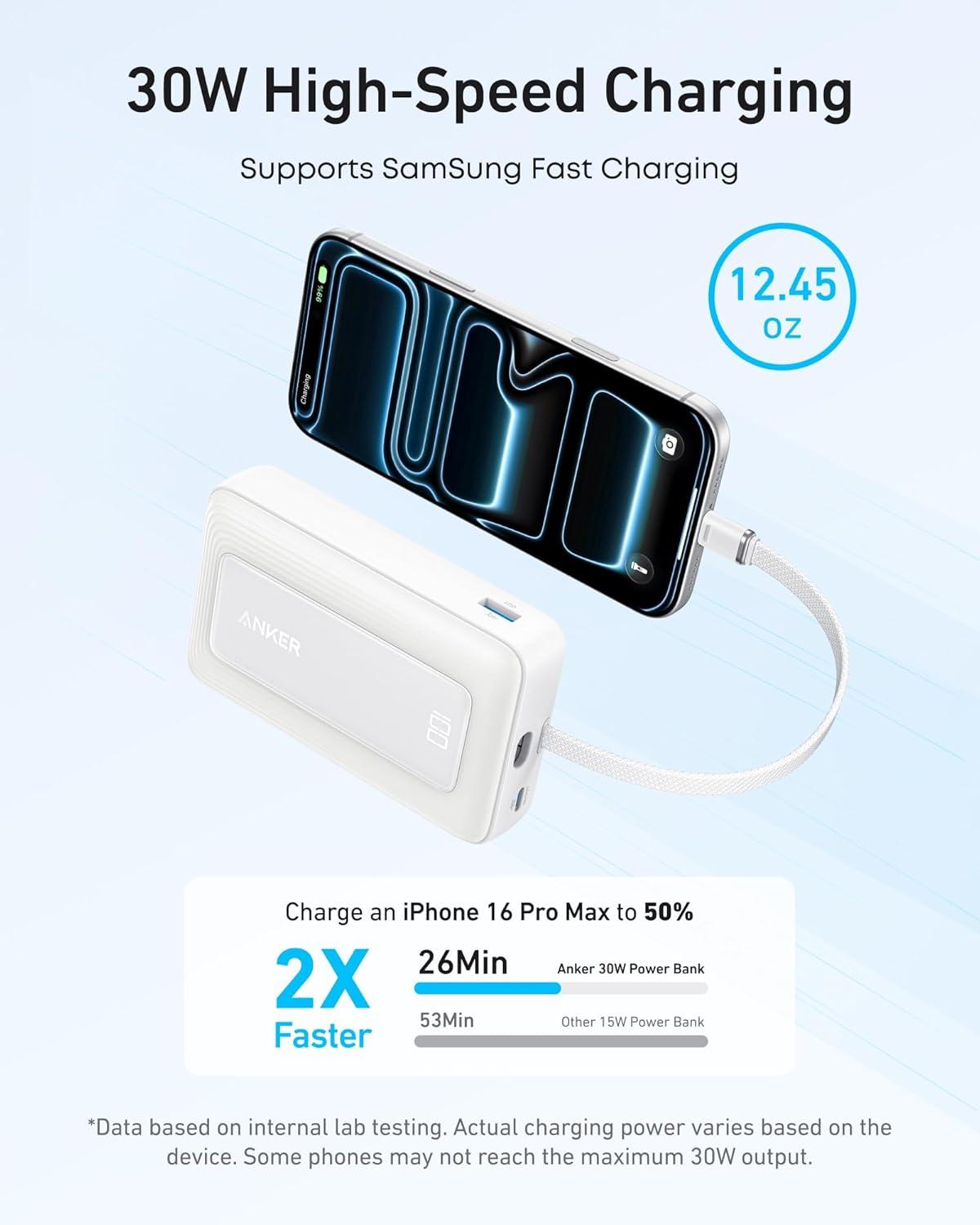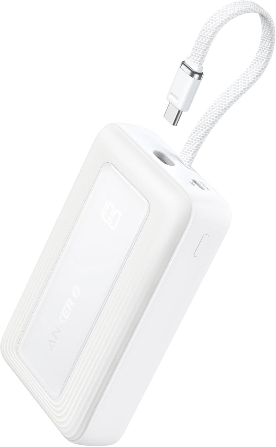 Anker Portable Charger, 10,000mAh 30W Power Bank, USB-C in and Out Fast Charging Battery Pack, Travel Essential Phone Power Bank, for iPhone 17/16/15, iPad, MacBook, Galaxy, Google, and More(White)