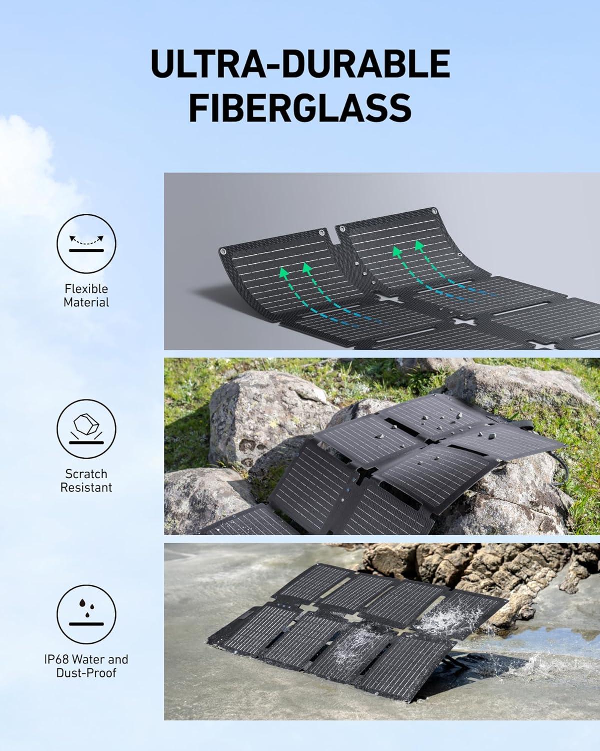60W Solar Input: When your journey needs endless charging, do so seamlessly and sustainably with a 60W solar panel. This power station is not compatible with Anker SOLIX PS30 (or other 5V~3A USB-C panels), PS200, PS400.