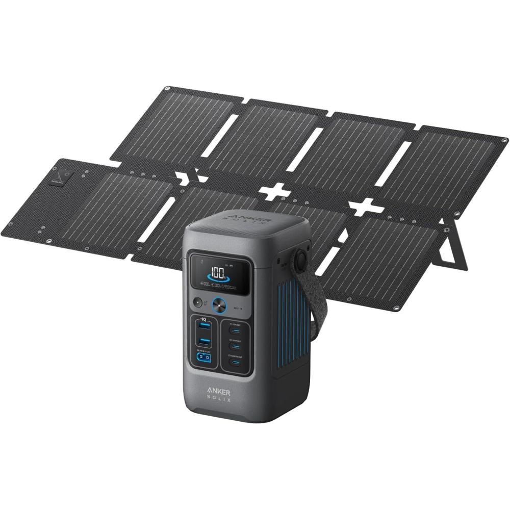 Anker SOLIX C200 DC Power Bank Station and 60W Solar Panel, 192Wh Portable Power Station, LiFePO4 Battery, 200W Solar Generator, for Outdoor, Camping, Traveling, and Emergencies(AnkerSOLIX C200 DC + 60 W Solar Panel)