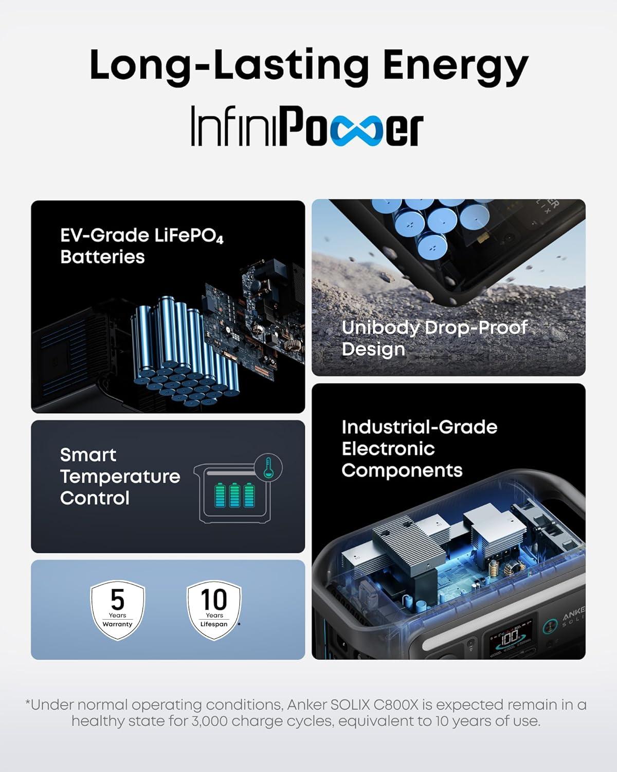 Power Every Day for 10 Years: Thanks to InfiniPower technology, power every day for a decade. These batteries last 6× longer than other brands with over 3,000 cycles.