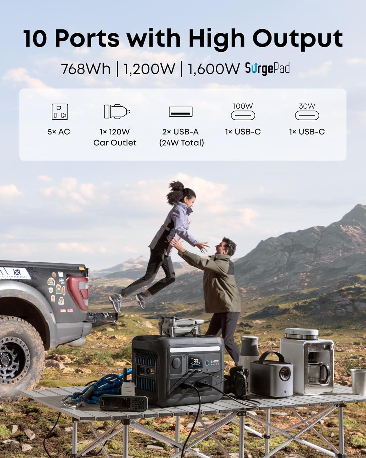 Anker SOLIX C800 Portable Power Station with 100W Solar Panel, 1200W (Peak 1600W) Solar Generator, Full Charge in 58 Min, 768Wh LiFePO4 Battery for Outdoor Camping, RVs, Road Trip, and Power Outages(Anker SOLIX C800 X+100W Solar Panel)