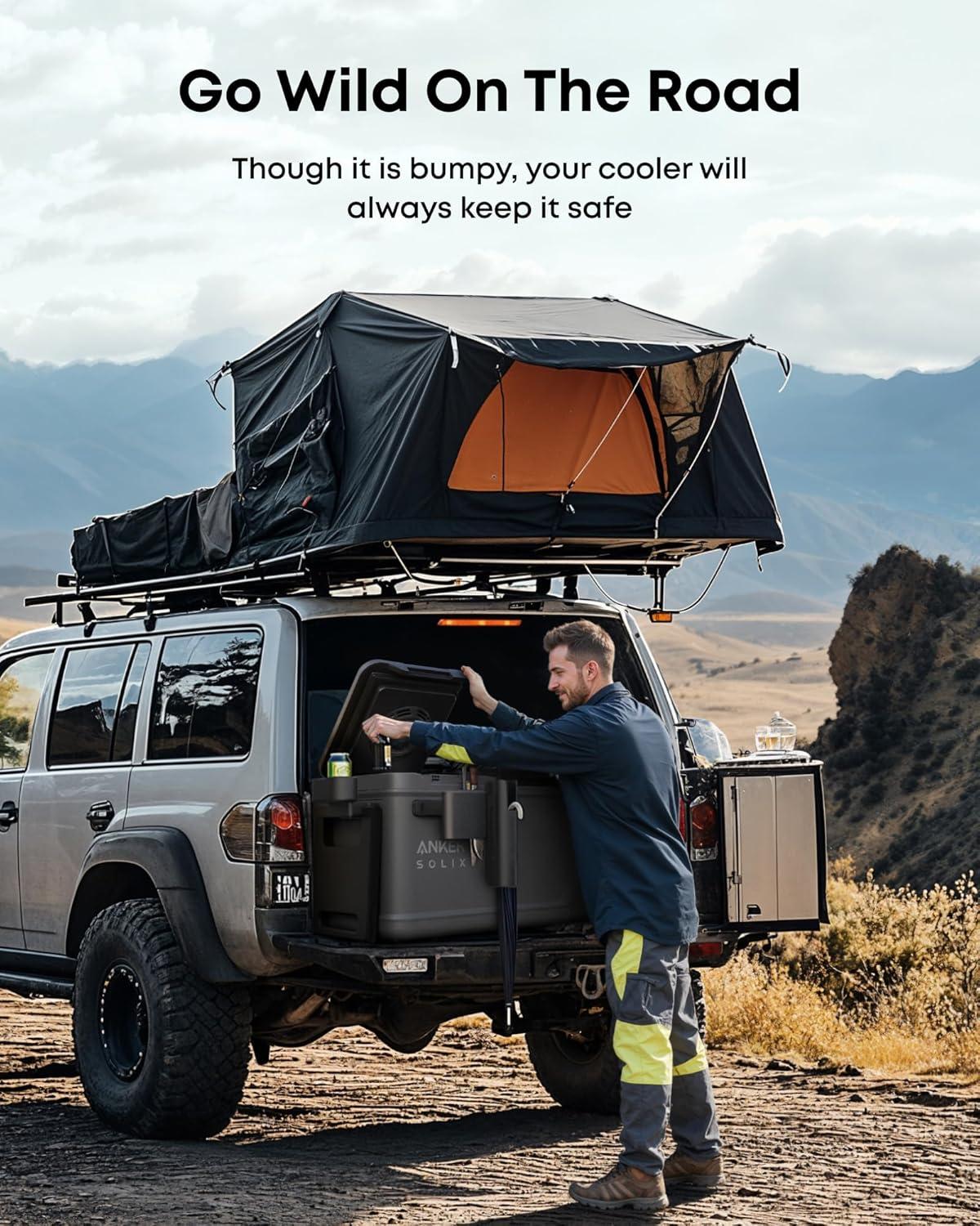 Anker SOLIX EverFrost 2 58L Cooler with Road Trip Kit, 61 qt Car Refrigerator, Electric Cooler with 288Wh Battery, Powered by AC/DC or Solar (B0DXF7XZJZ)(Road Trip Kit+58L Cooler)