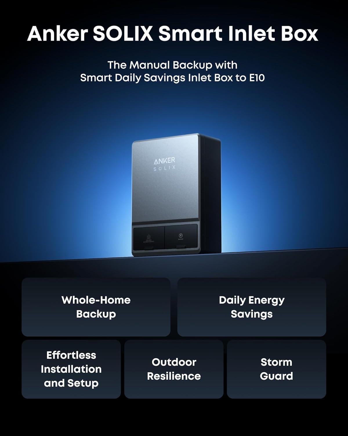 Anker SOLIX Smart Inlet Box, Manual Whole-Home Backup with Smart Daily Savings for E10, Reduce Up to 80% Bills, NEMA 3R Weatherproof, Plug & Play, Storm Guard Mode