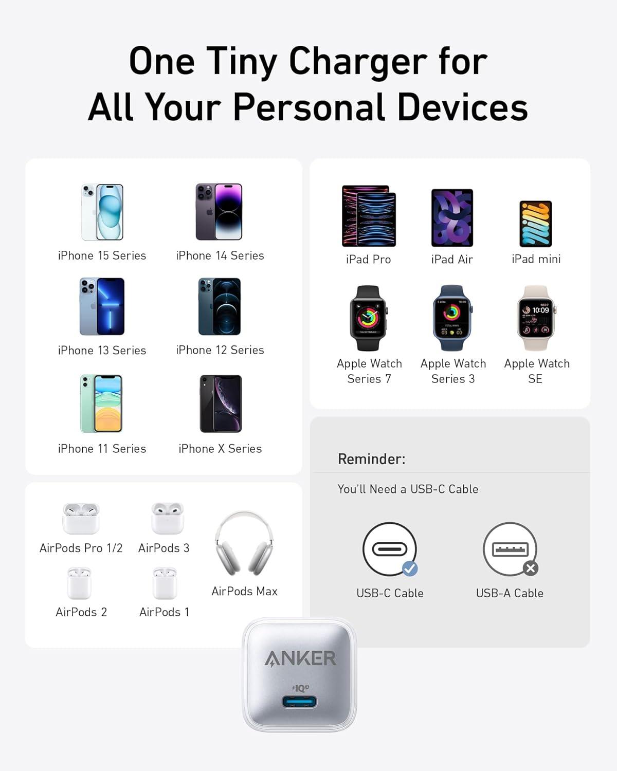 What You Get: Anker 511 Charger ( Anker Nano Pro ), welcome guide, our worry-free 18-month warranty, and friendly customer service (cable not included).